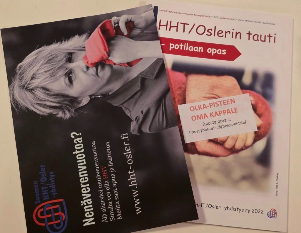 Painatimme OLKA-pisteille esitteitä HHT/Oslerin taudista sekä HHT/Oslerin tauti -potilaan oppaita. Opas on tarkoitettu OLKA-pisteellä säilytettäväksi selailukappaleeksi. Opas löytyy vapaasti katsottavissa ja tulostettavana kotisivuiltamme, mutta sitä voi myös tilata yhdistykseltä. Paperiversiosta joudumme veloittamaan painamisen sekä postimaksun hinnan, yhteensä 10 euroa (vuoden 2025 hinta). Jotkut yliopistosairaalat ovat painaneet itse oppaita, esimerkiksi HUS Olser-lääkäreiltä opasta saa käynnin yhteydessä veloituksetta.